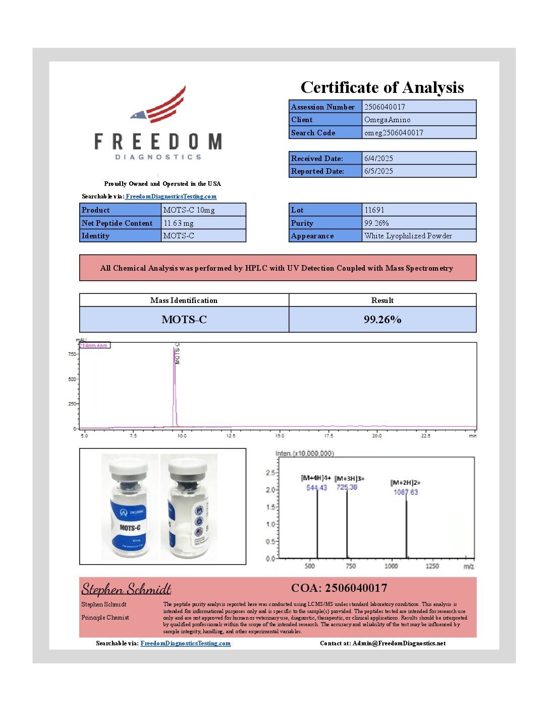 10mg vial. Our U.S. Mots-C powder undergoes third-party testing to ensure purity, authenticity, and potency.